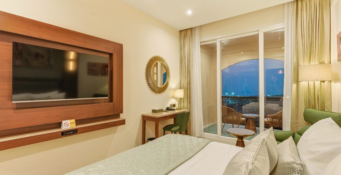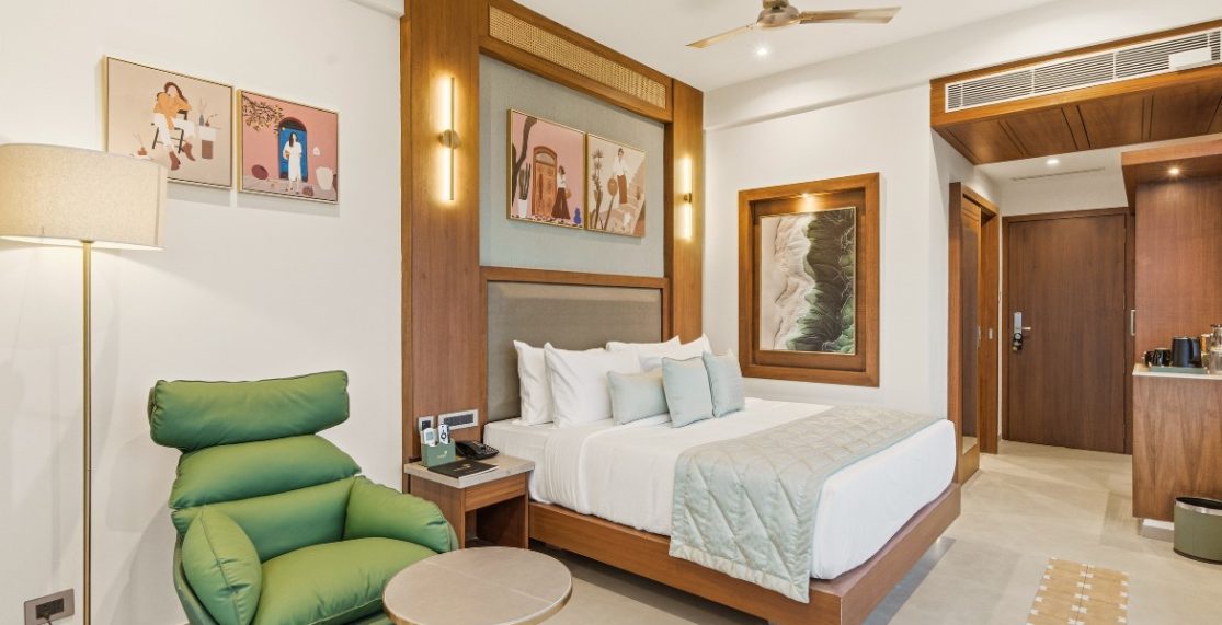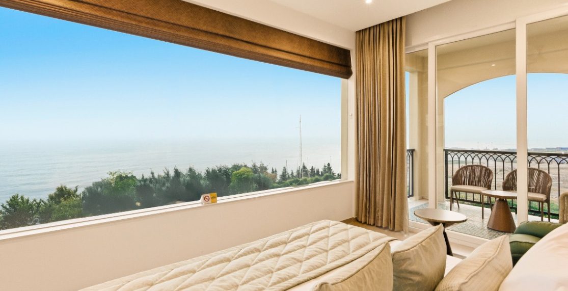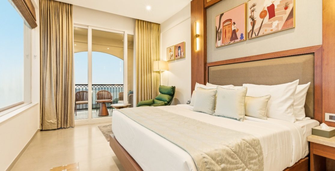 Immerse in refined luxury with sleek interiors, premium comforts, and partial ocean view from balcony, designed to elevate every moment of your stay.