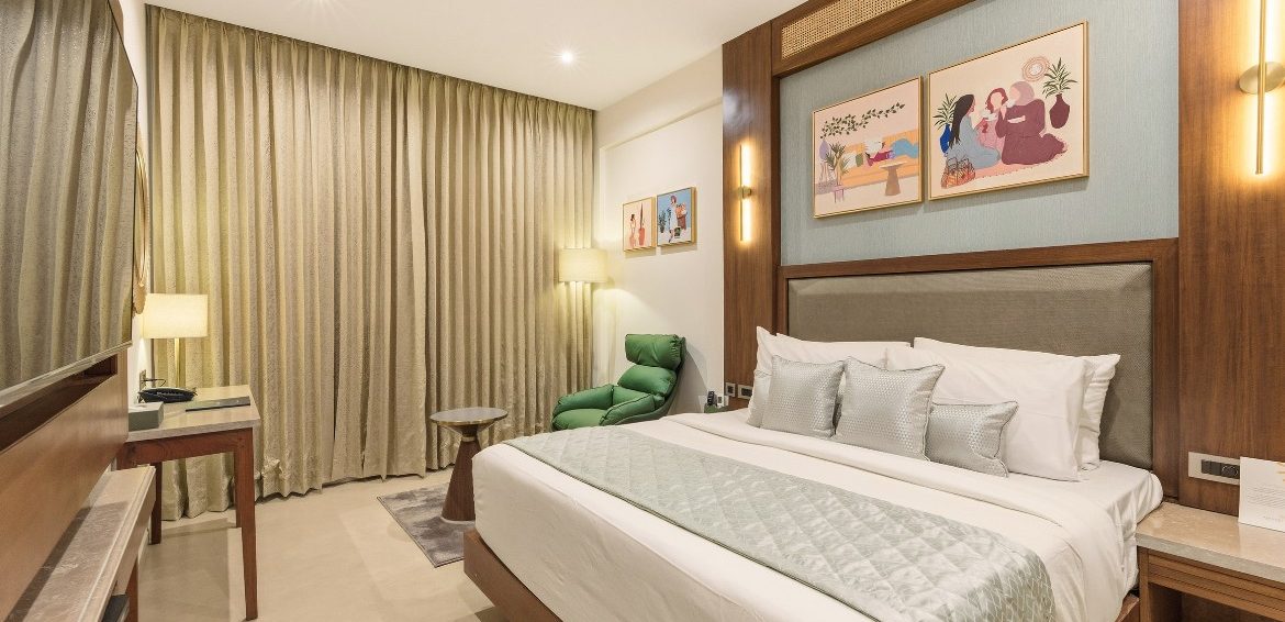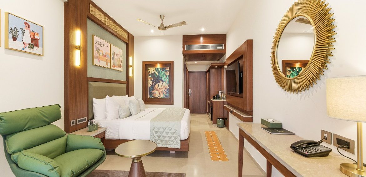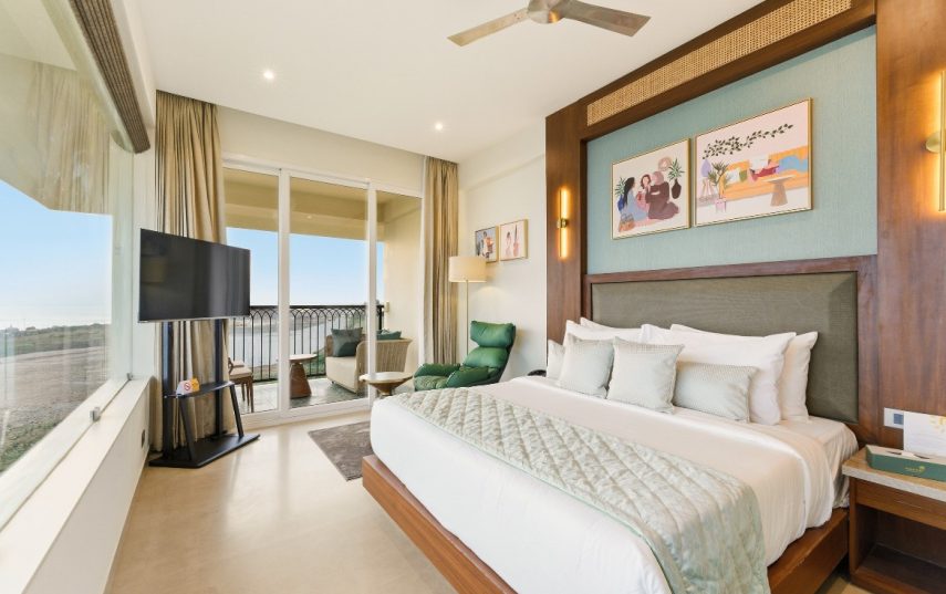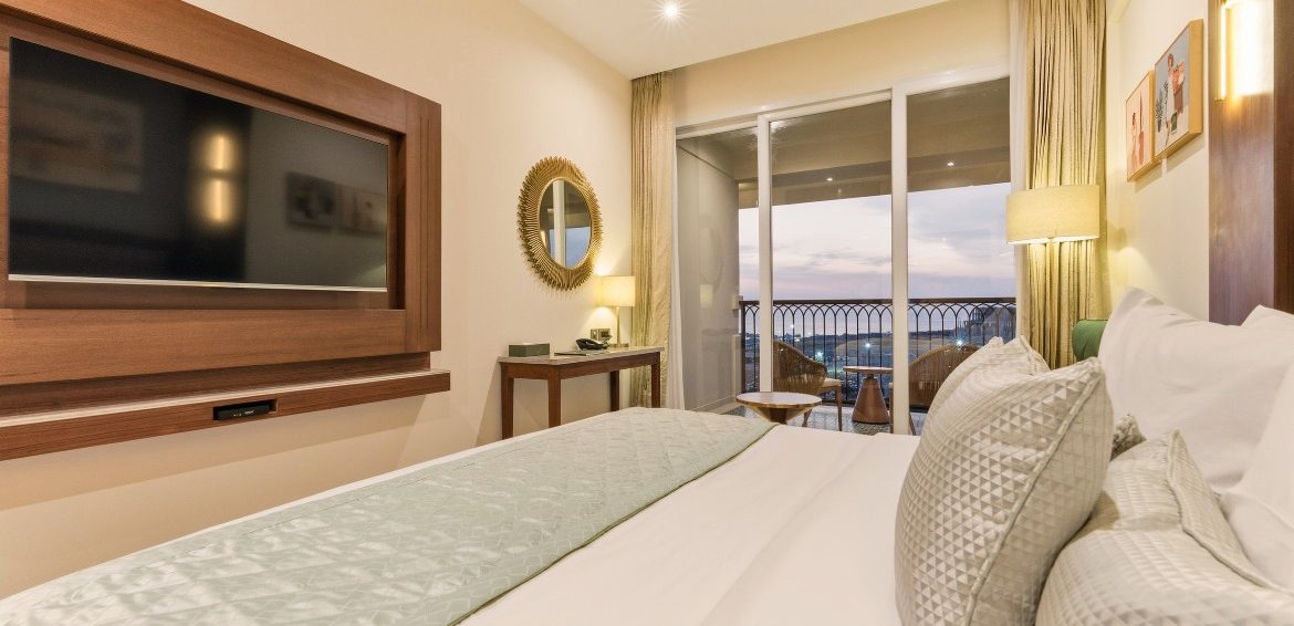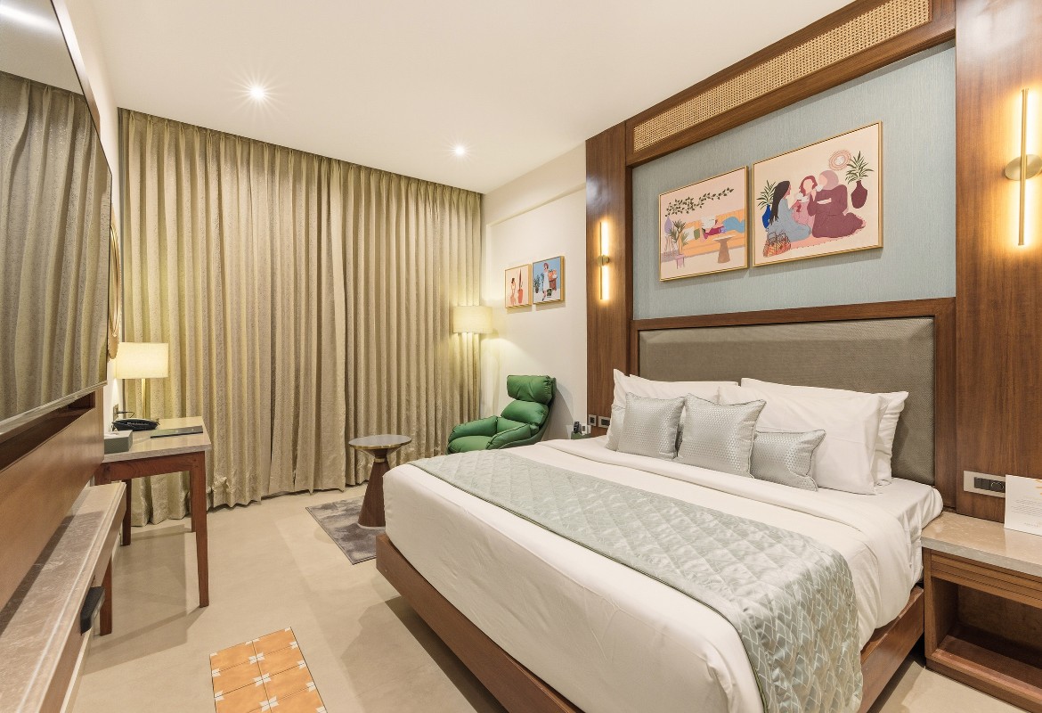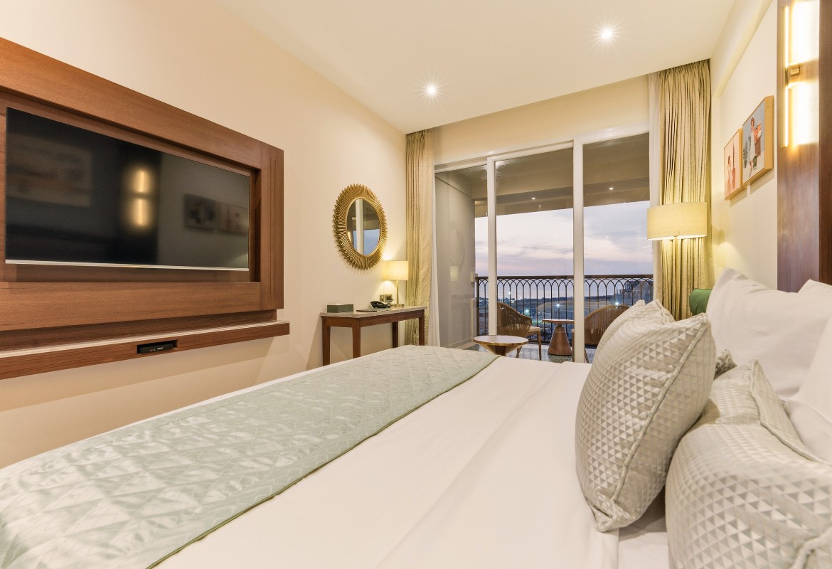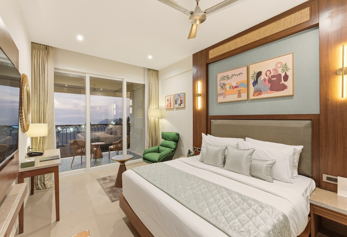 Relax in style in a spacious room with superior amenities, including plush bedding, a private balcony, modern conveniences such as high-speed Wi-Fi, a smart TV with OTT access, a gourmet tea/coffee station, and a rain shower.