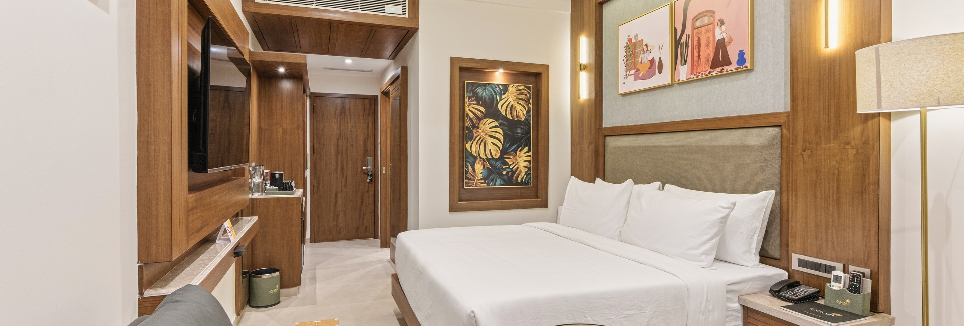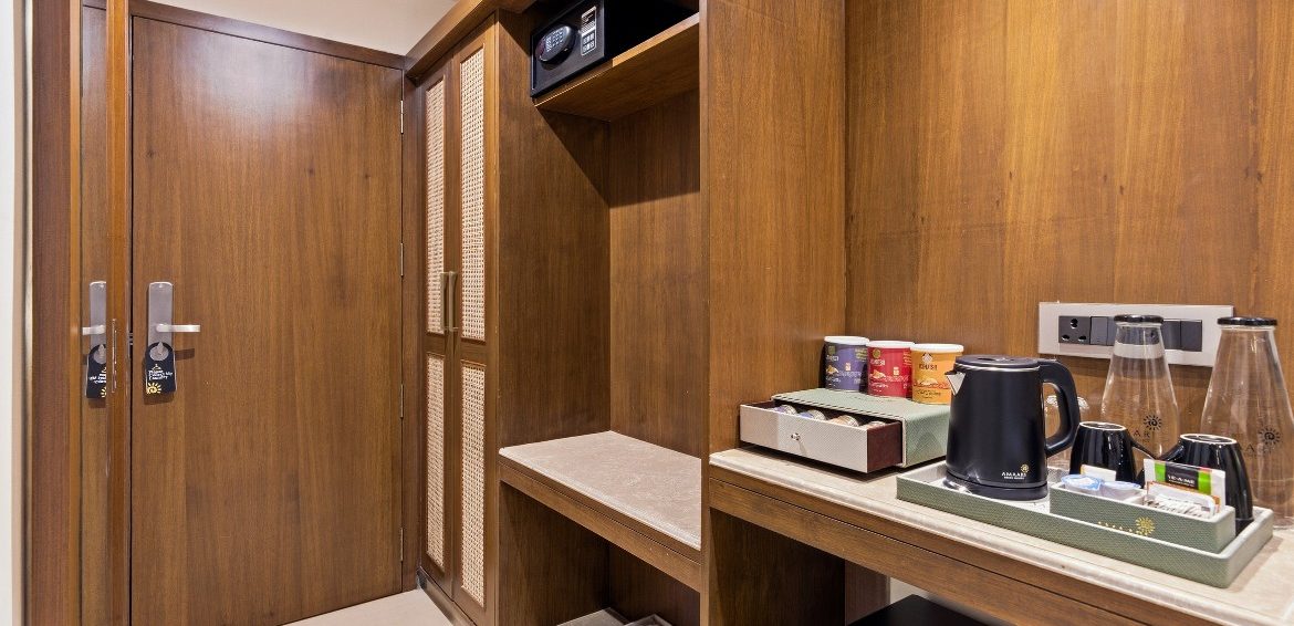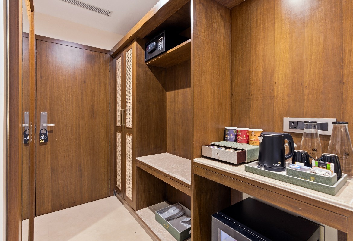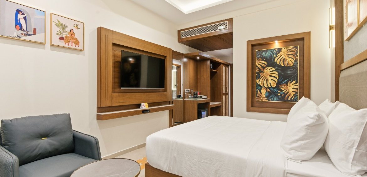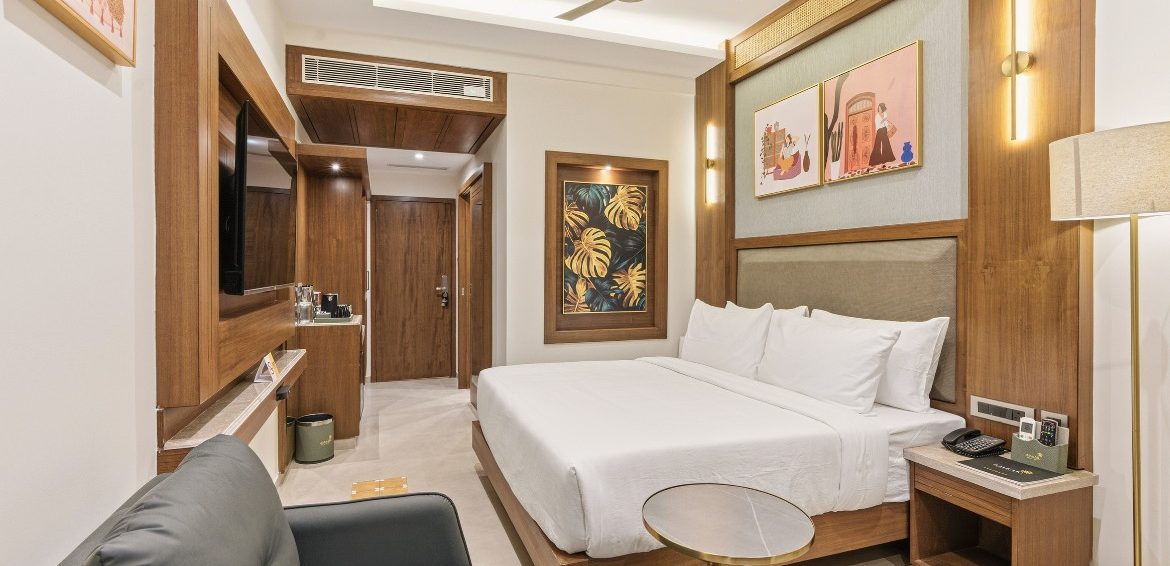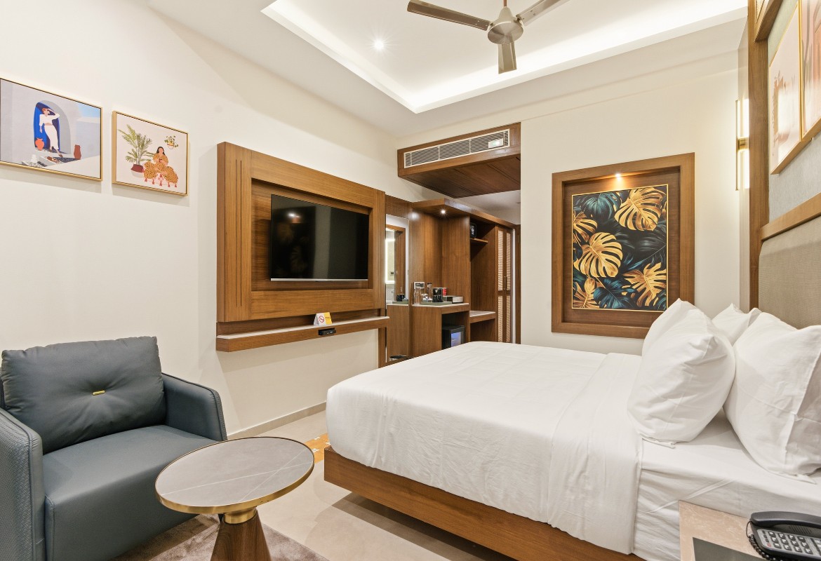 Relax in style in a spacious room with superior amenities, including plush bedding, a private balcony, modern conveniences such as high-speed Wi-Fi, a smart TV with OTT access, a gourmet tea/coffee station, and a rain shower.